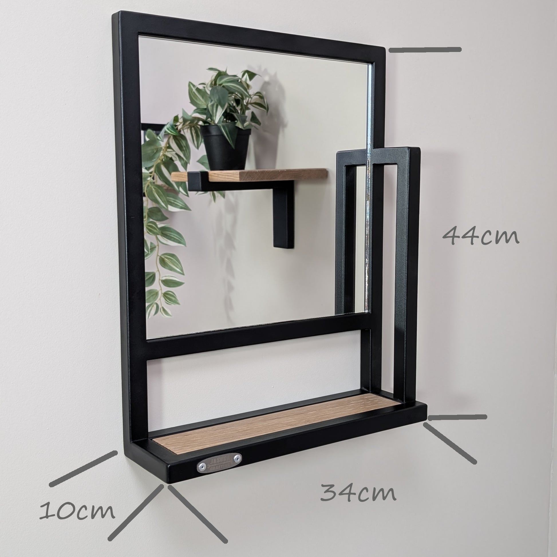 Este espejo es una pieza espectacular. El diseño industrial con el estante de madera le da un toque moderno y práctico. Es de gran calidad y transforma cualquier pared. ¡100% recomendado!