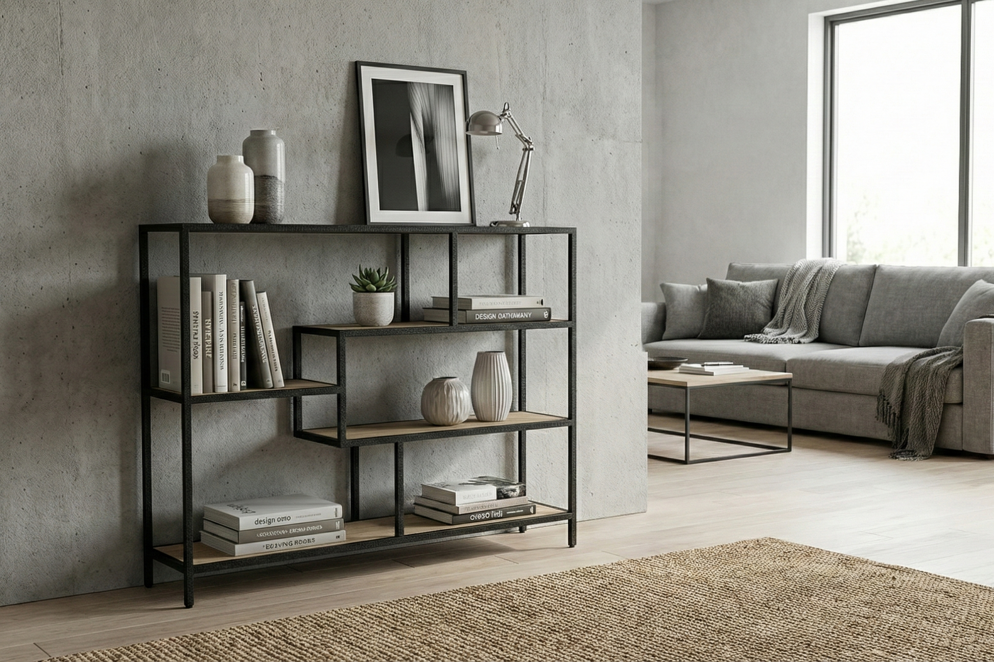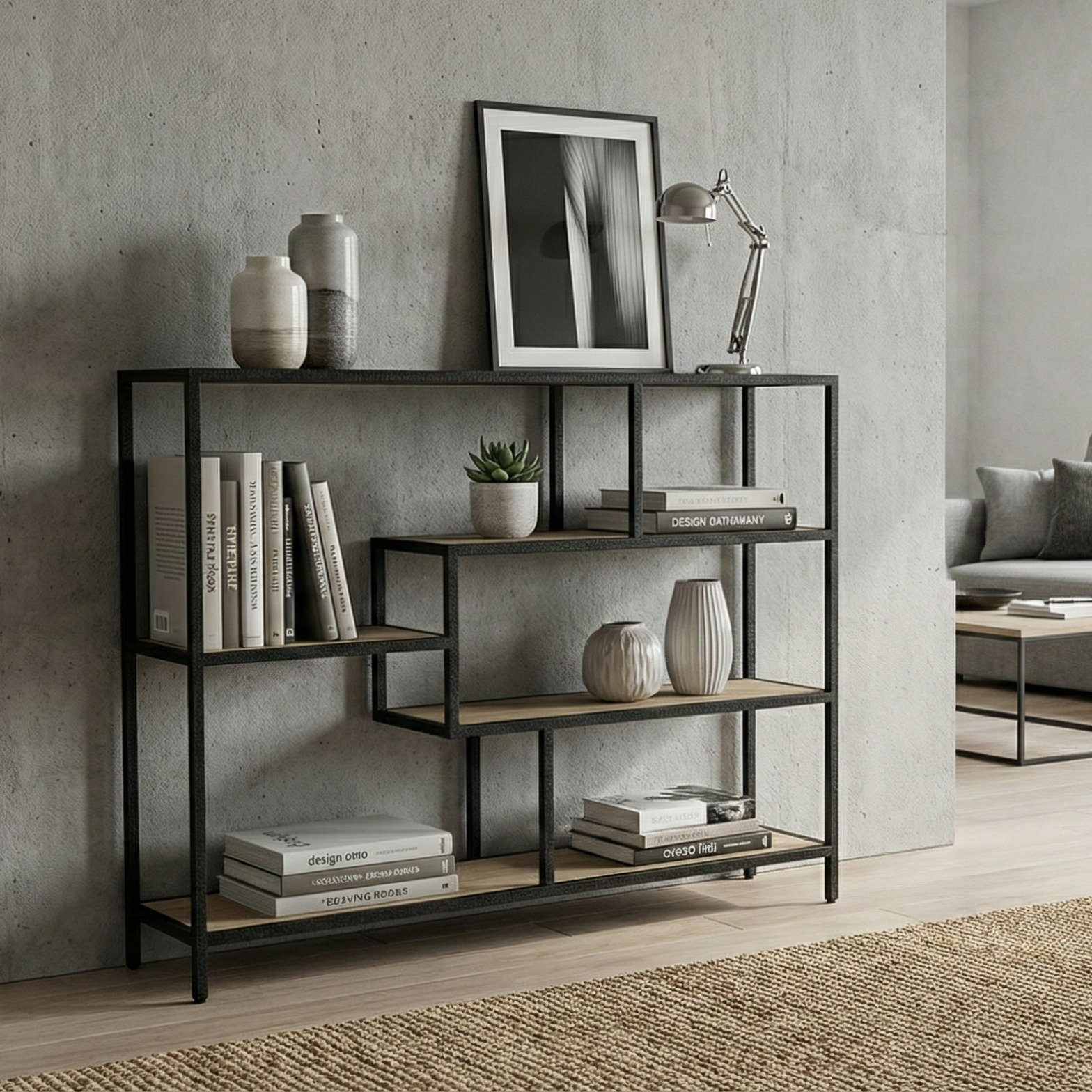 Estantería estilo Industrial en Metal y Fresno